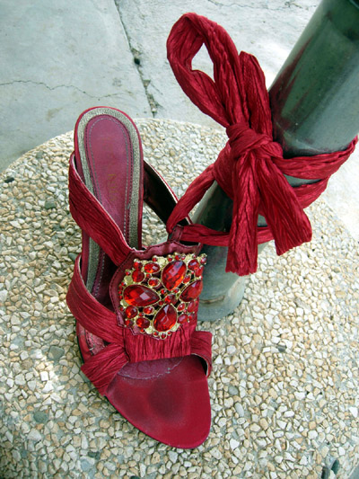 Red shoes of cloth. Scarpe rosse di stoffa.